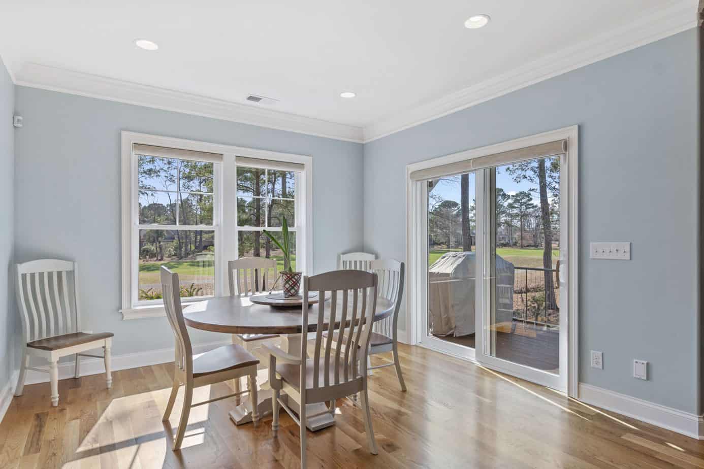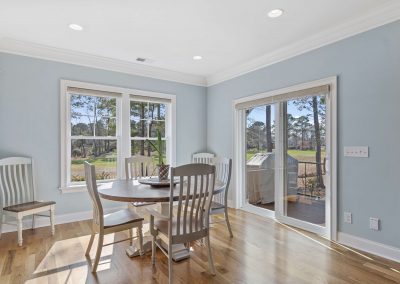 The bright Carolina room is an inviting setting to read a book or relax will enjoying the elevated view of the golf course and pond. The heated and cooled space allows you to enjoy the space year-round.