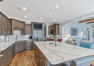 The guest bedrooms offer ample space for guests and family to spread out. One bedroom offers an en suite bathroom and visitors will marvel at the beautifully detailed guest shower. The rear guest room has a panoramic golf and water view. You may have a hard time getting your guests to leave.